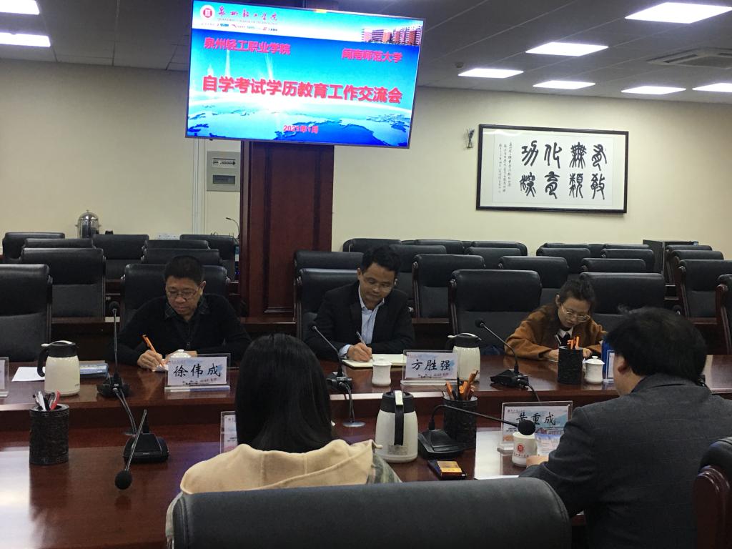 泉州海洋公司张超副董事长、泉州轻工职业公司黄重成副董事长、闽南理工大学BB贝博艾弗森张一强经理以及泉州纺织服装公司BB贝博艾弗森柯阿斌经理分别带领本校继续教育工作团队与闽南师大一行开展了业务交流,四所高校纷纷表示希望以多种形式加强与闽南师大的合作,规范成人公司产品管理,注重人才质量,不断提高成人高等教育的人才培养质量。