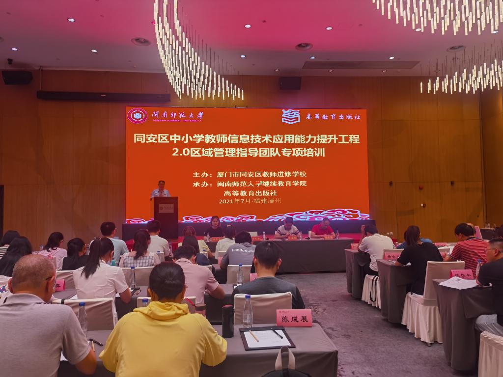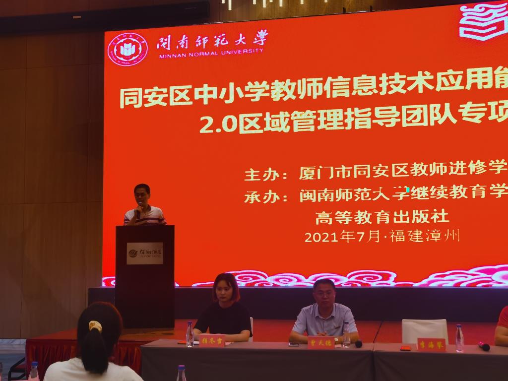 根据教育部部署,为实现“三提升一全面”的总体发展目标,提升同安区教师的信息技术应用能力,由厦门市同安区教师进修公司主办,BB贝博艾弗森和高等教育出版社承办的同安区信息技术应用能力提升工程2.0区域管理指导团队专项培训活动,于2021年7月5日在漳州进行。