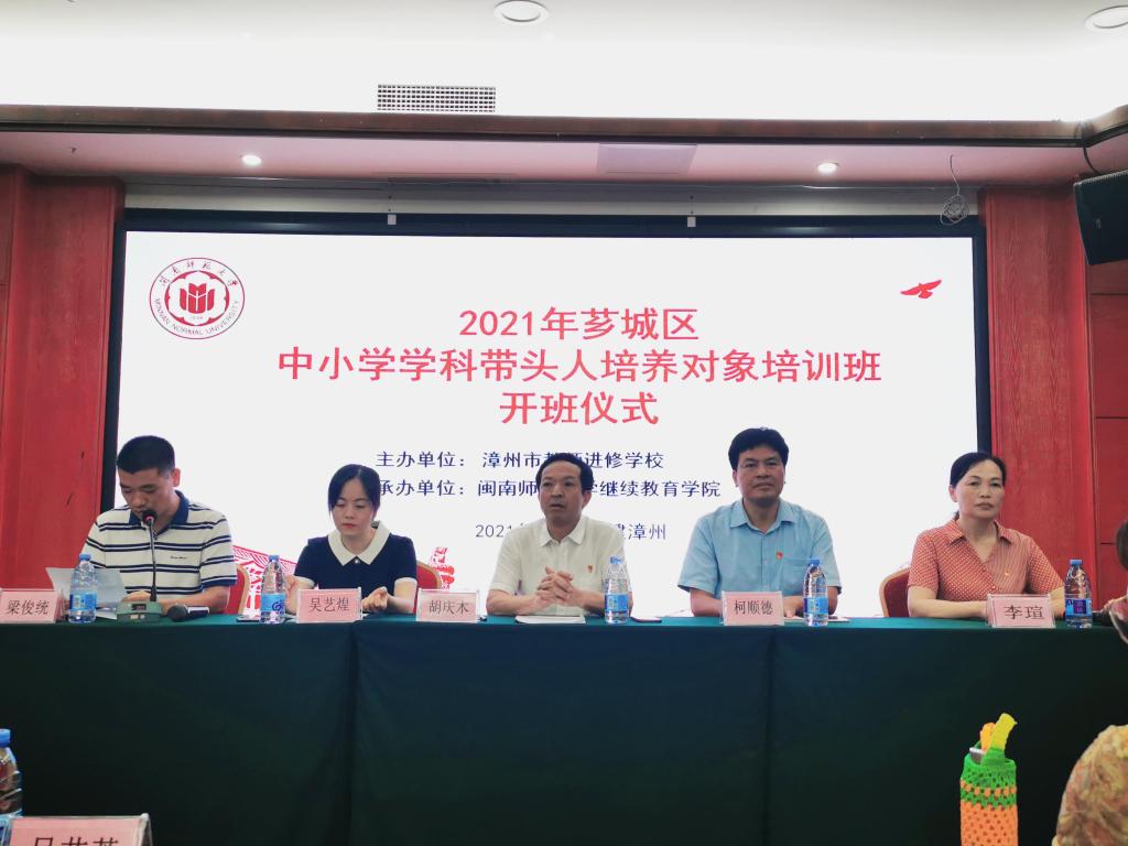 2021年7月26日上午,由漳州市教师进修公司主办,BB贝博艾弗森承办的“2021年芗城区中小学学科带头人培养对象培训班”开班仪式在漳州市银佳宾馆举行。参加开班仪式的领导嘉宾有:芗城区教育局局领导、二级主任科员胡庆木、芗城区教育局党组成员、漳州市教师进修公司董事长柯顺德、漳州市教师进修公司书记李瑄;BB贝博艾弗森办公室主任吴艺煌、BB贝博艾弗森培训部梁俊统、漳州市教师进修公司培训处全体老师以及芗城区中小学学科带头人培养对象。开班仪式活动由闽南师大BB贝博艾弗森培训部梁俊统主持。
