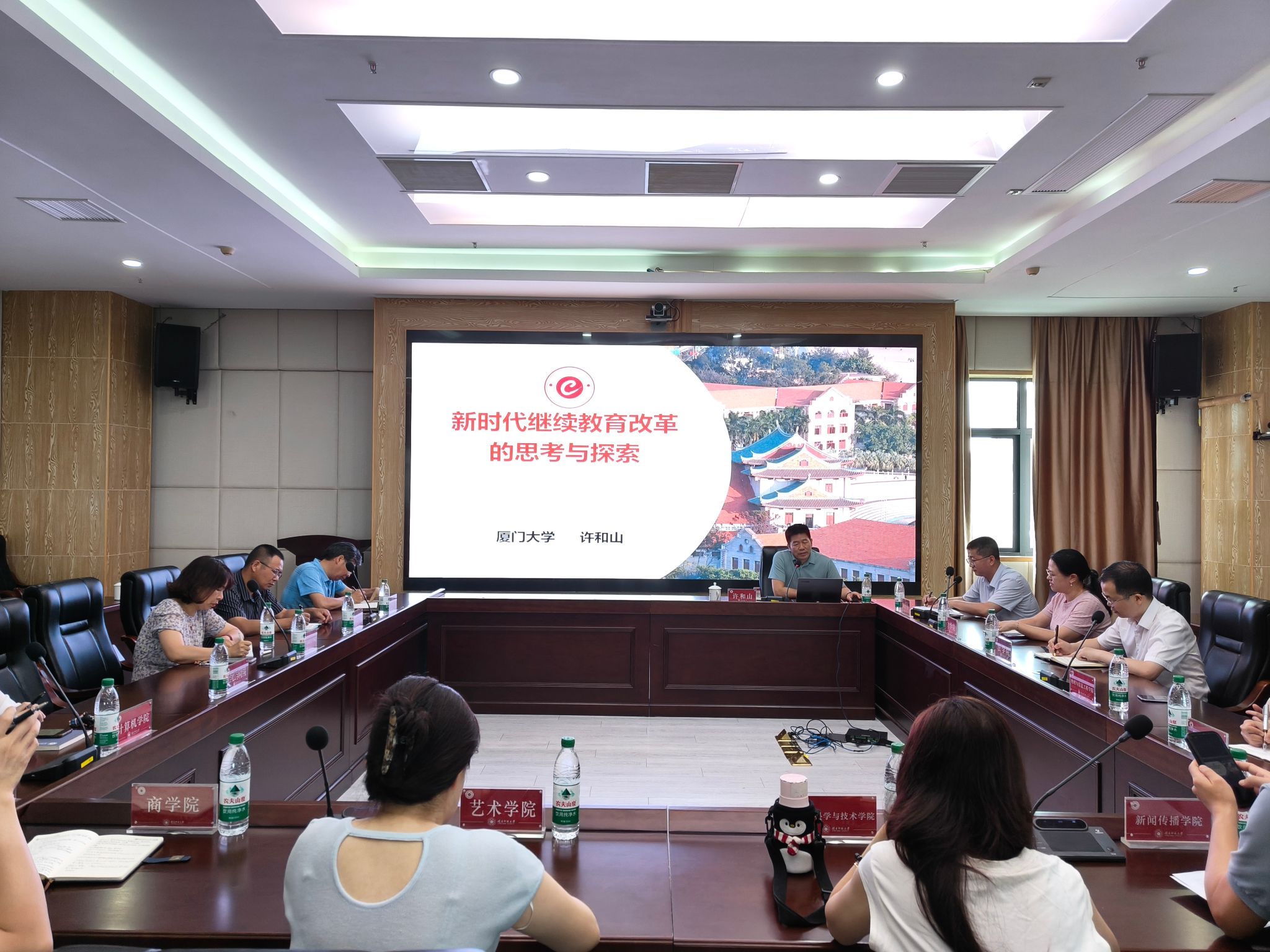 活动特邀中国教育发展战略学会产教融合专业委员会副理事长、厦门大学BB贝博艾弗森原经理许和山教授作专题报告。他以《新时代继续教育改革的思考与探索》为题,运用马克思主义世界观方法论,结合多年实践经验和研究成果,系统剖析了继续教育在服务国家战略、赋能区域发展中的关键作用,深入阐述了继续教育改革的目标任务、根本立场、时代新篇、科学方法和再发展理念,并以厦门大学继续教育改革为例,就数字化转型、产教融合、质量提升等关键问题提出了创新理念和独到见解。