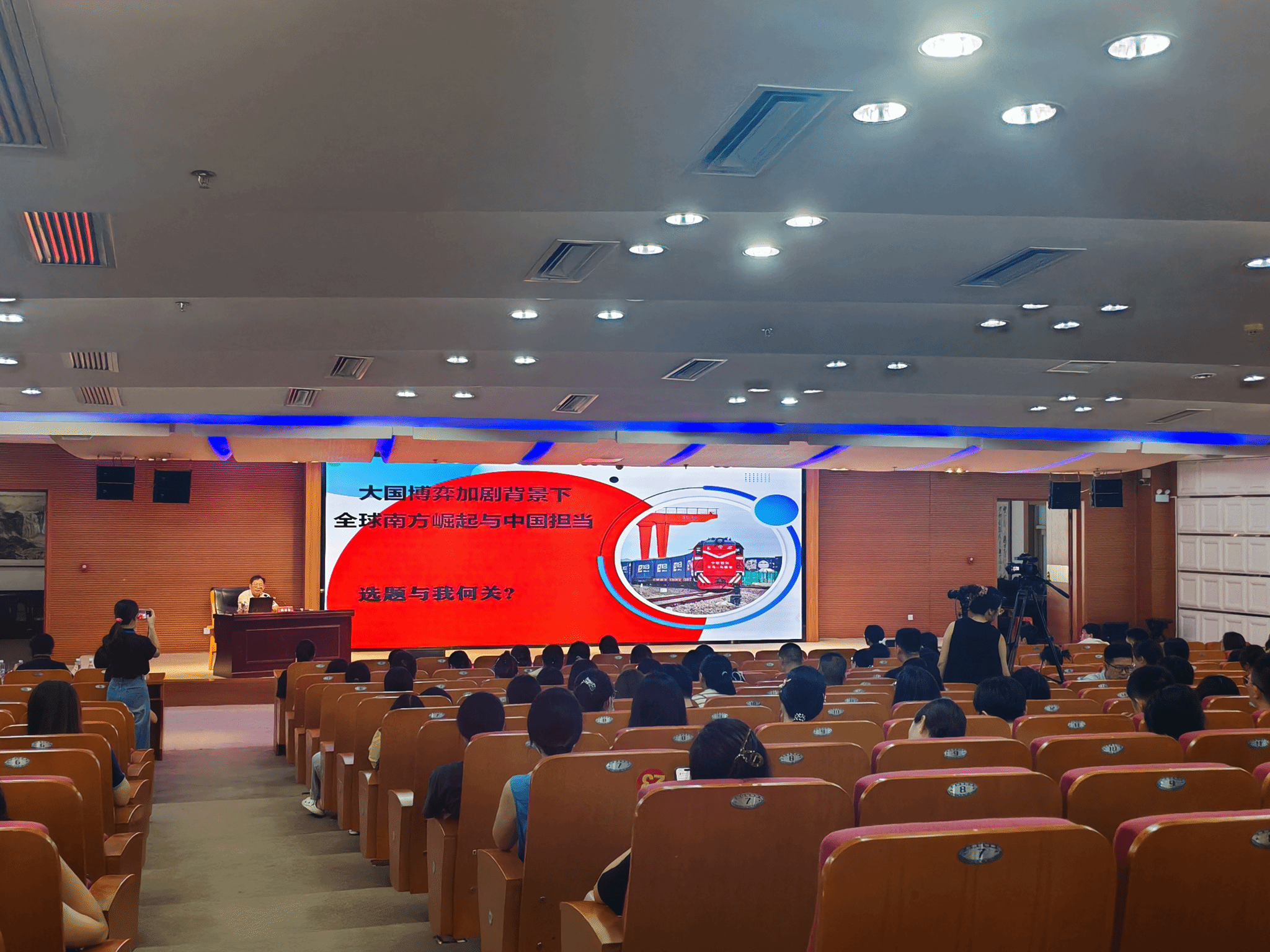 7月5日,BB贝博艾弗森2025级高等学历继续教育新生开学典礼在逸夫图书馆五楼报告厅举行。公司党委常委、副董事长何绍福出席,并以《大国博弈加剧背景下全球南方崛起与中国担当》为题,为全体新生讲授“开学第一课”。