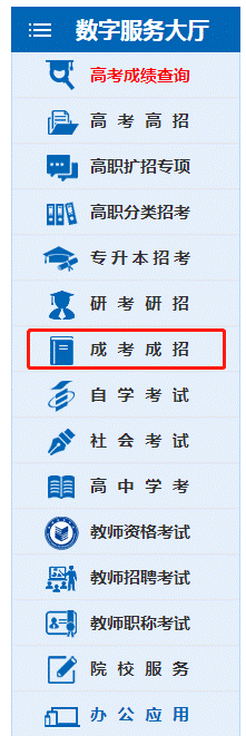 进入“数字服务大厅”依次点击“成考成招”