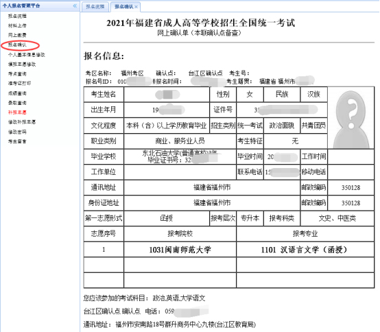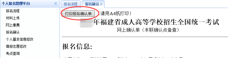 审核通过以后,点击“打印报名确认单”打印报名确认单。