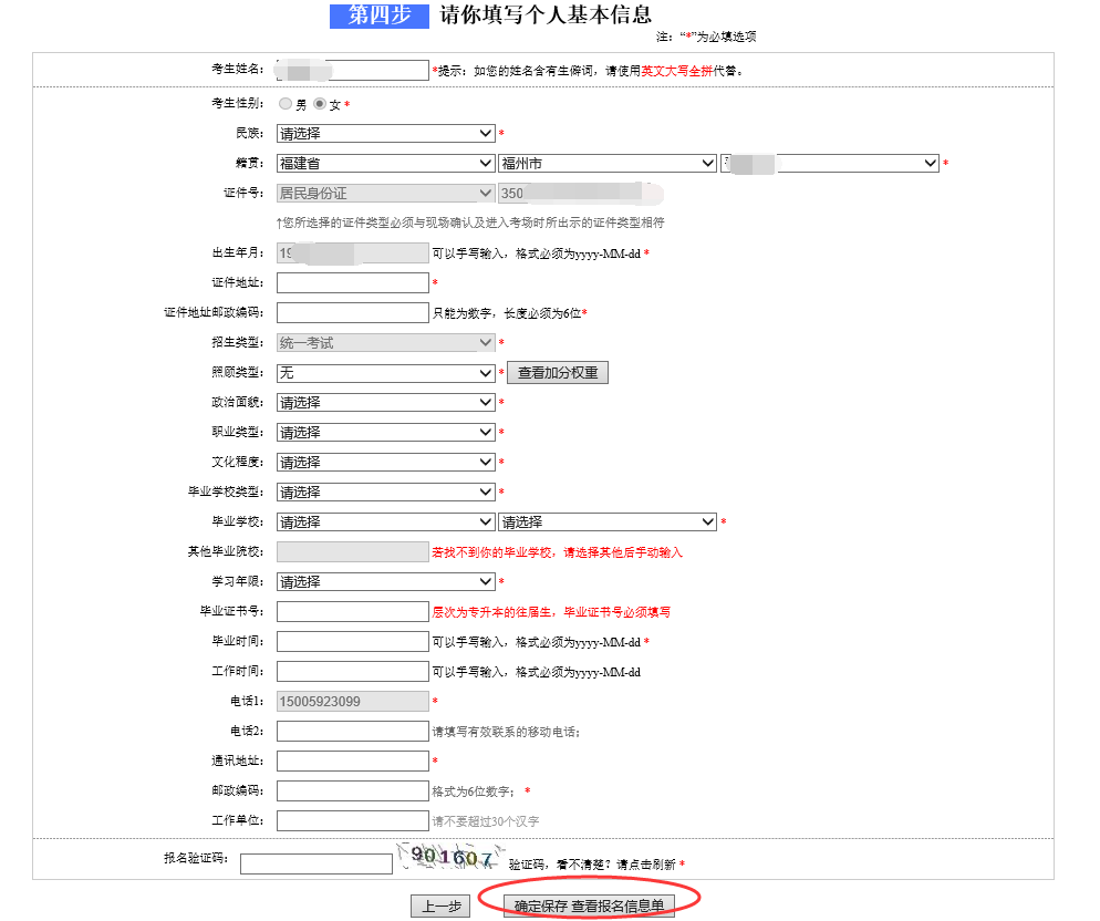 点击“下一步 填写个人基本信息”,进入下图所示界面:填写个人基本信息。