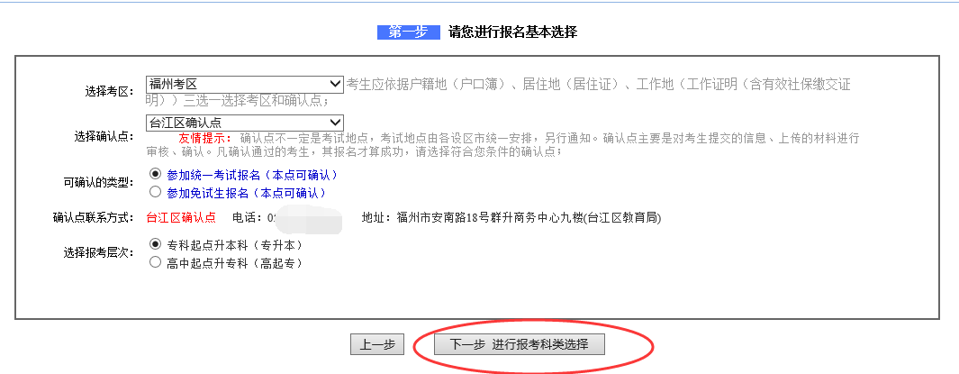 注:选择确认点与可确认的类别已由各市级管理员根据确认类别设置权限关联,考生选择确认点时需根据参加的类别慎重选择,如有疑问与确认点联系咨询。