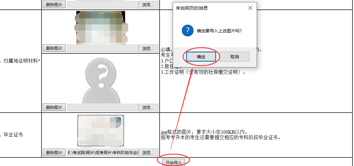 根据信息提示进行上传,点击“开始导入”按钮,点击“确定”,提示上传成功。