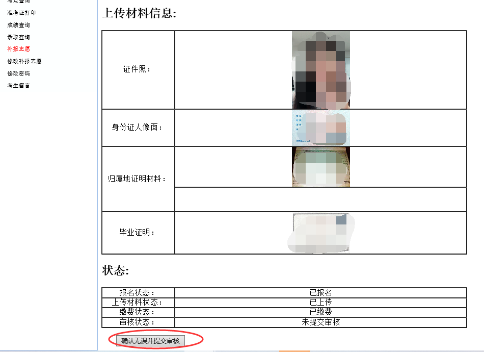 点击“确认无误并提交审核”,审核状态变为“已提交审核”,审核期间无法修改信息。
