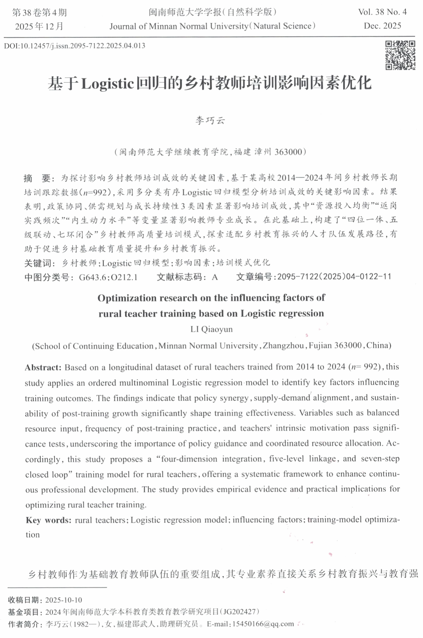 李巧云:基于Logistic回归的乡村教师培训影响因素优化