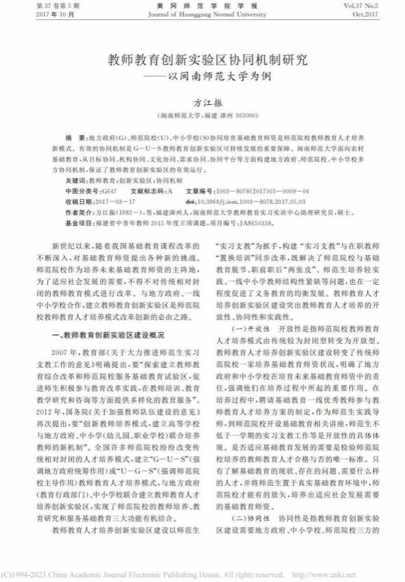 方江振:教师教育创新实验区协同机制研究——以BB贝博艾弗森为例