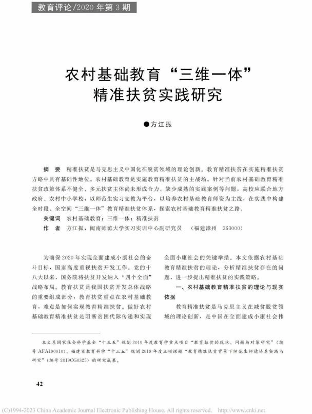 方江振:农村基础教育“三维一体 ”精准扶贫实践研究